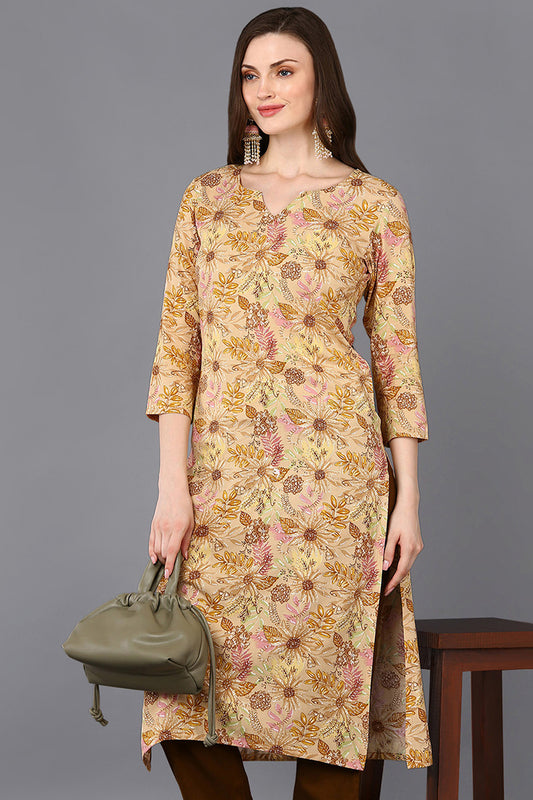 Viscose Rayon Yellow Floral Printed Straight Kurta VCK9342