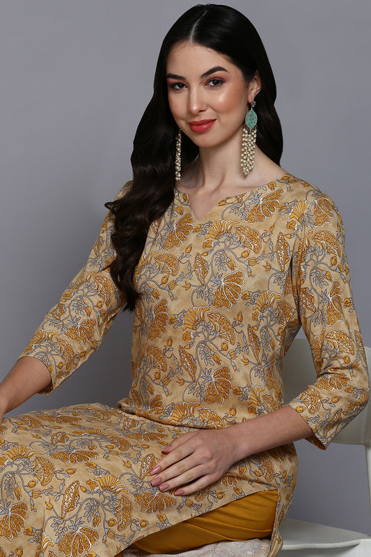 Mustard Cotton Blend Floral Straight Kurta VCK8582