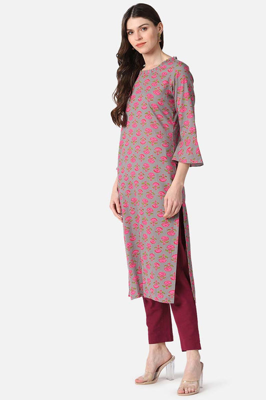 Multi Colored Floral Rayon Blend A-line shape Printed Kurta VCK1549