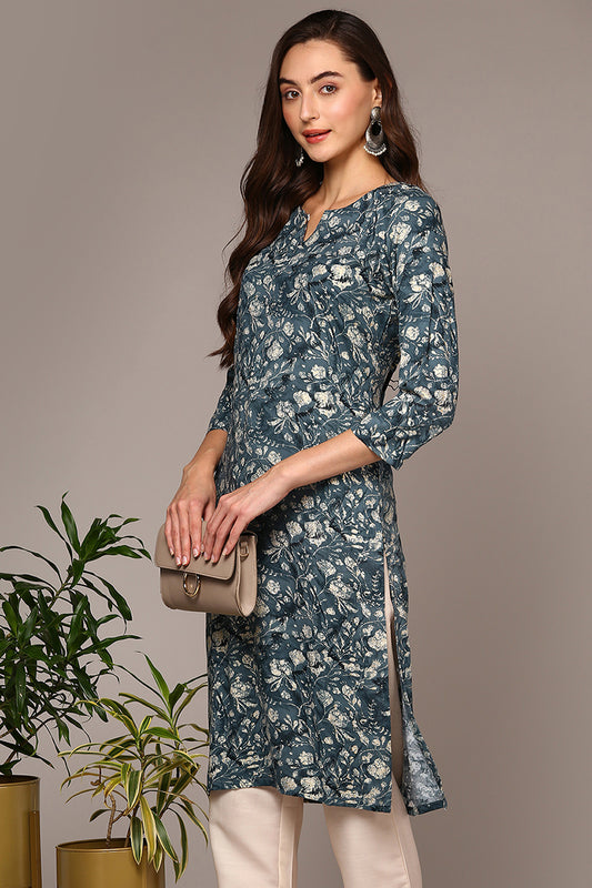 Blue Viscose Rayon Floral Printed Straight Kurta VCK9475
