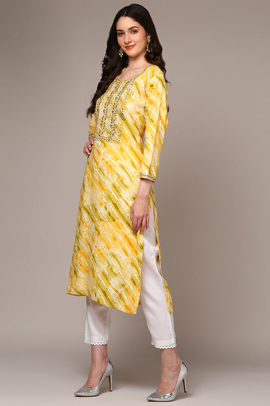 Yellow Viscose Rayon Leheriya Printed Straight Kurta VCK9496