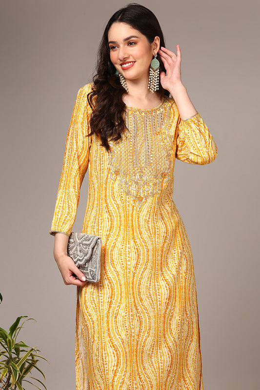 Yellow Viscose Rayon Abstract Printed Kurta VCK9514