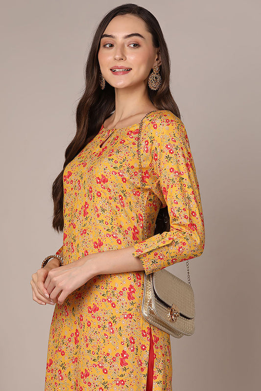 Yellow Viscose Rayon Floral Printed Straight Kurta VCK9501