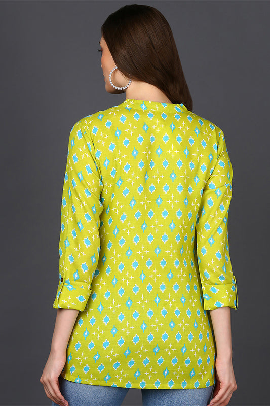 Lime Green Cotton Blend Geometric Print Straight Tunic VT1226