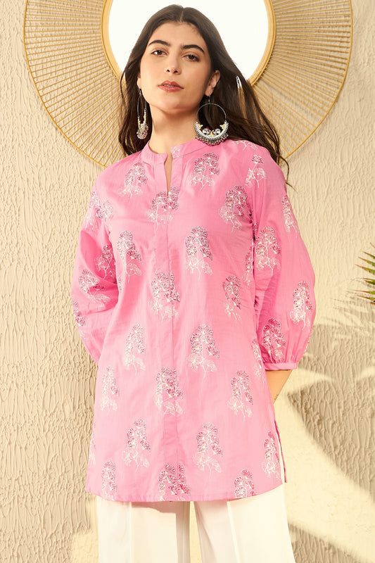 Pink Cotton Blend Floral Printed Regular Tunic VT1305