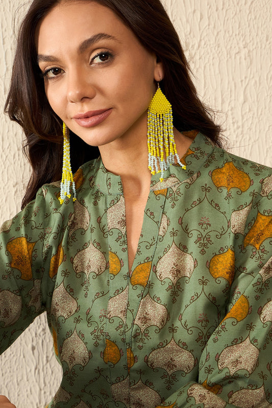 Green Cotton Blend Ethnic Motifs Printed Peplum Tunic VT1283