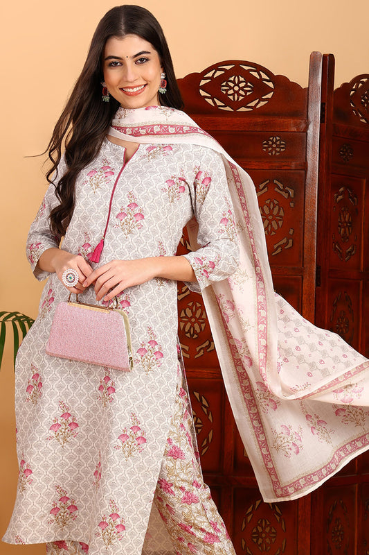 Pink Rayon Blend Floral Straight Printed Suit Set VKSKD2232