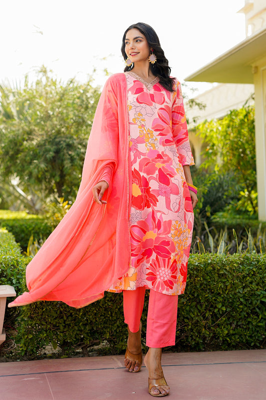 Multi Rayon Blend Floral Printed Straight Trouser Suit Set VKSKD2246