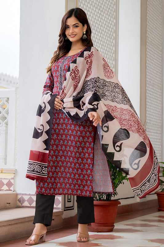 Maroon Rayon Blend Ethnic Motifs Printed Straight Trouser Suit Set VKSKD2253