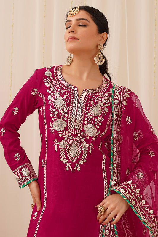 Maroon Silk Blend Solid Embroidered Straight Suit Set PKSKD2511MRN