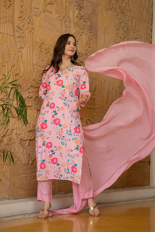 Pink Rayon Blend Floral Printed Straight Suit Set PKSKD2510PNK