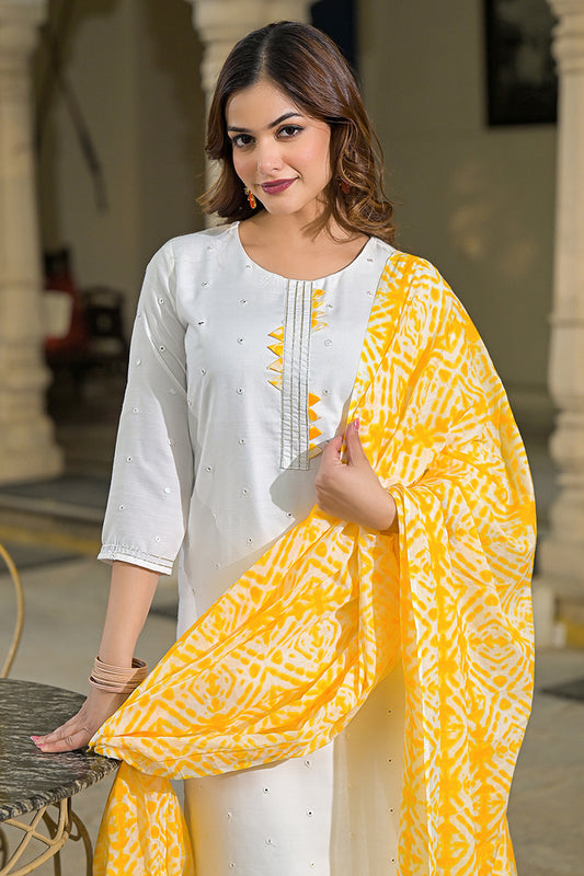 Yellow Rayon Blend Solid Embroidered Straight Suit Set VKSKD2215YLW