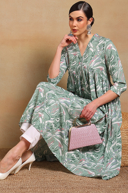 Green Viscose Rayon Floral Printed A-Line Kurta VCK9551