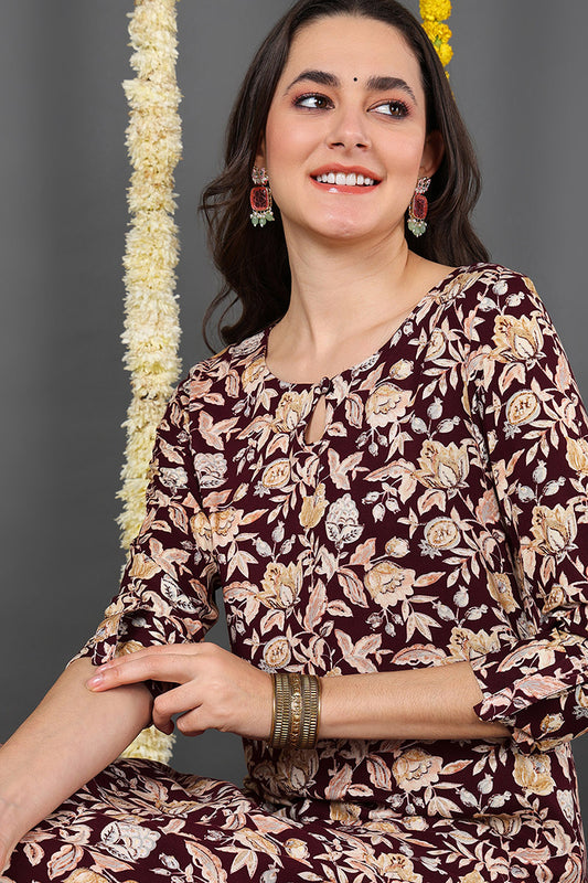 Maroon Viscose Rayon Floral Printed Straight Kurta VCK9721