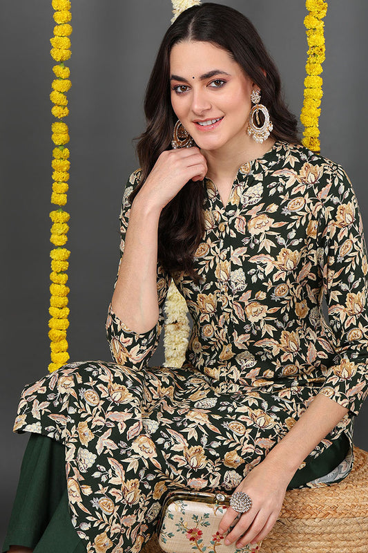Green Viscose Rayon Floral Printed Straight Kurta VCK9722