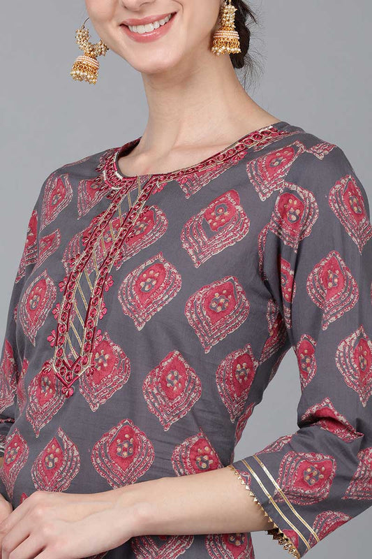 Mauve Cotton Geometric Printed Kurta VCK8815