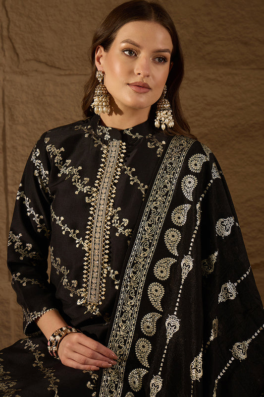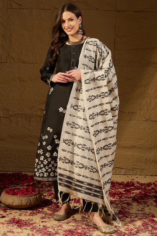 Black Poly Chanderi Solid Embroidered Straight Kurta Bottom and Dupatta PKSKD2900