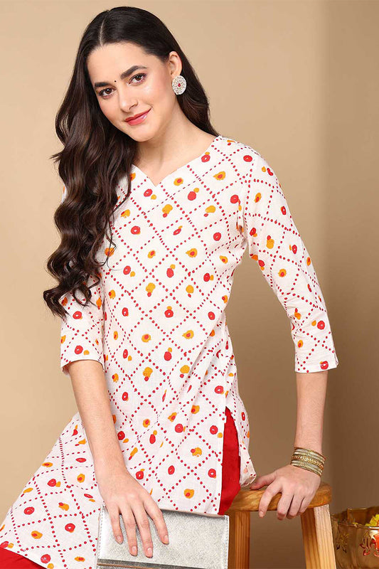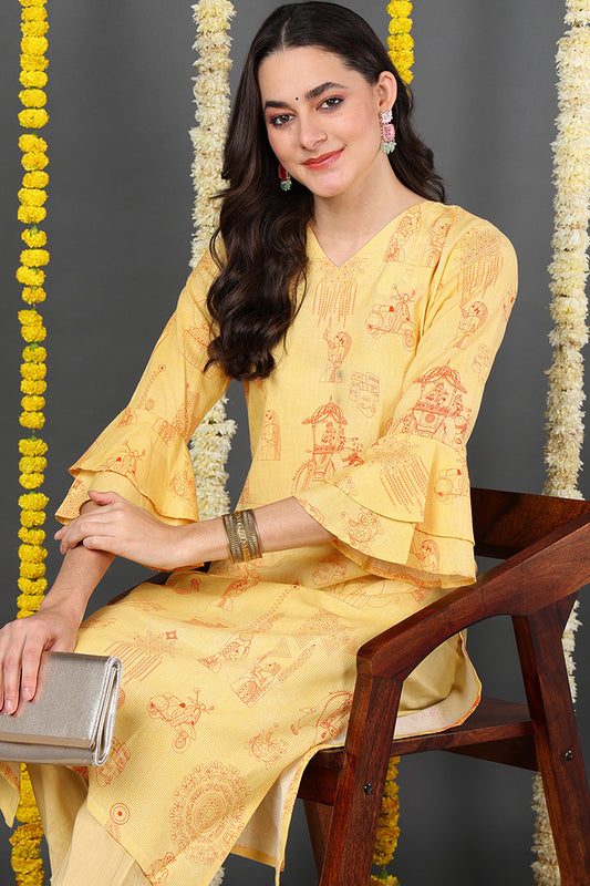 Women Cotton Fabric Yellow Color Printed Trendy Kurti VCK1122