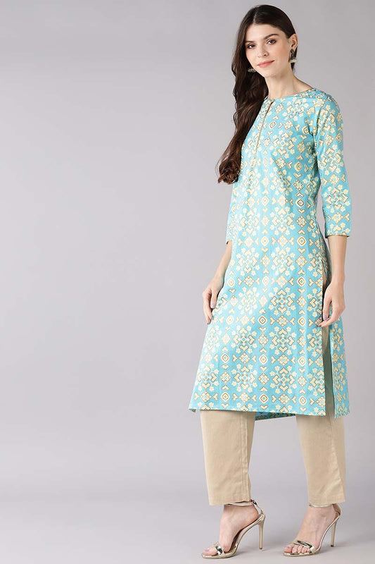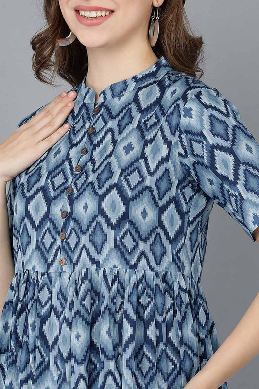 Women Blue Rayon Blend Geometric Printed VCK8590