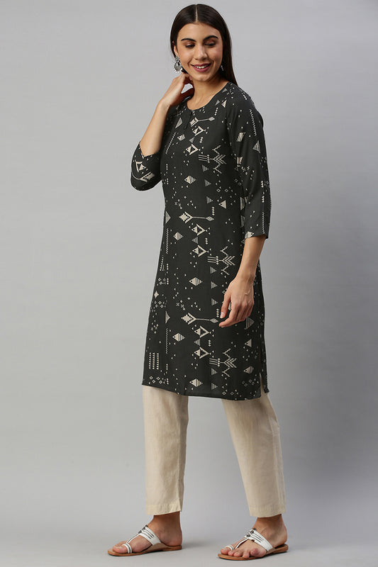 Women Charcoal Grey Printed Straight Kurta VCK1705E