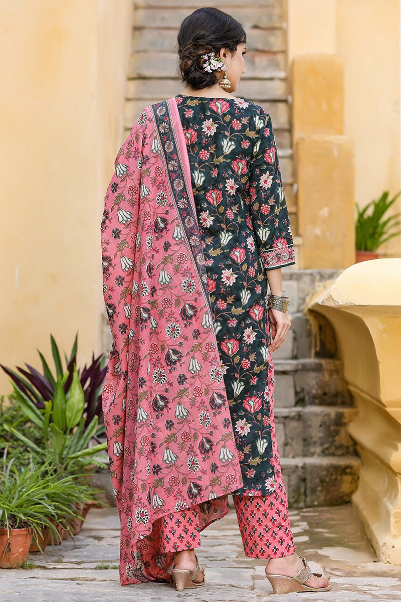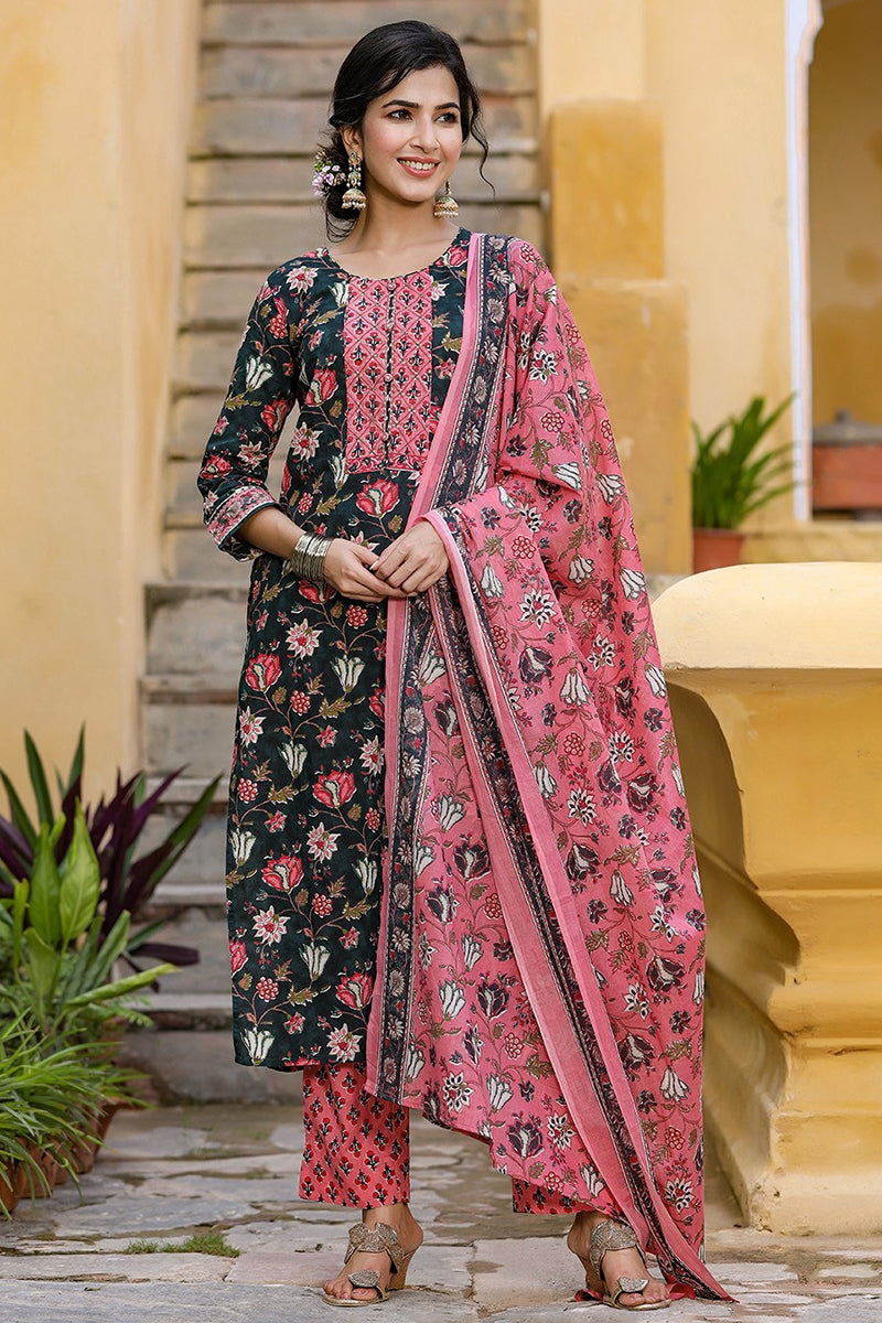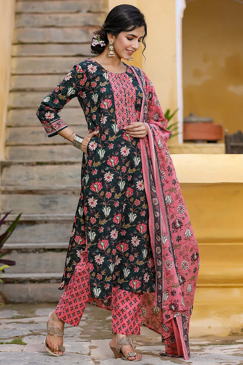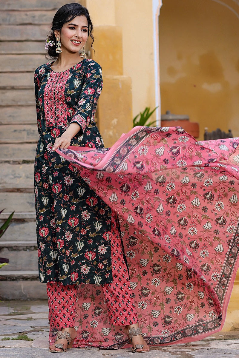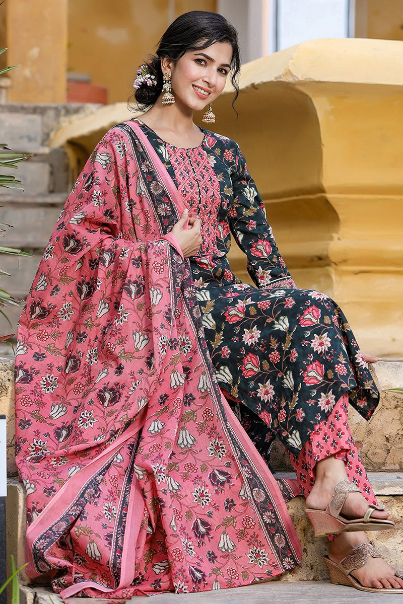 Look stylish and pretty at any festive gathering with the Blue Pink Ethnic Motifs Kurta with Dupatta from Ahika. Crafted with the finest quality Rayon Blend material, the Kurta set will surely keep you comfortable all day. Accessorize the set with dangler earrings and embellished jutties to create a buzz in the crowd. Sizes available S-XXL