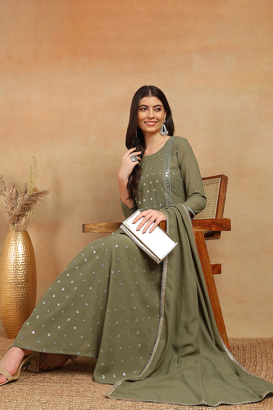 Olive Green Georgette Solid Embroidered Straight Palazzo Bottom Suit Set PKSKD2521OLV