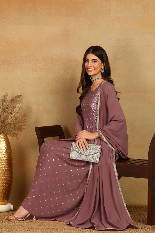 Mauve Pink Georgette Solid Embroidered Straight Palazzo Suit Set PKSKD2521PNK