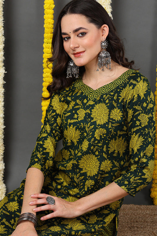 Green Rayon Blend Floral Printed Straight Suit Set VKSKD2161
