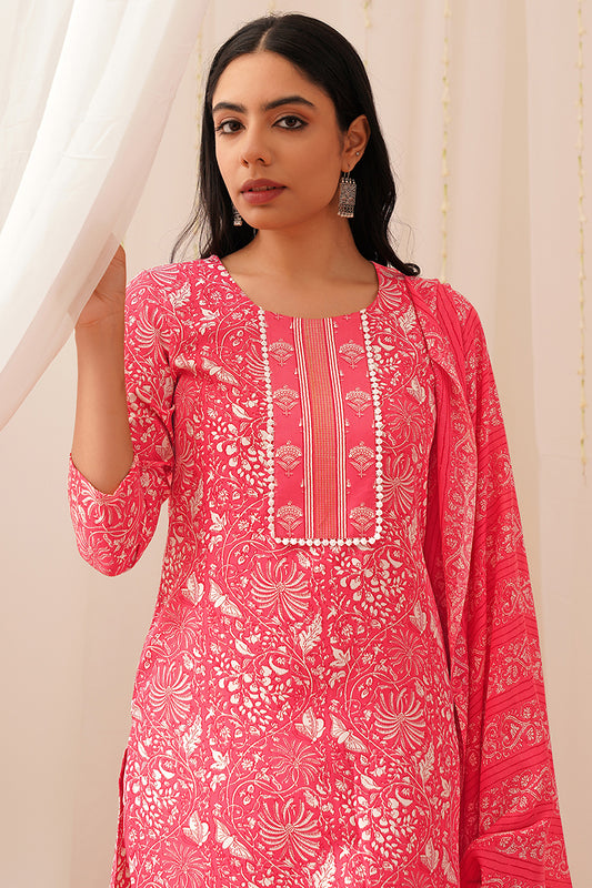 Pink Rayon Blend Floral Printed Straight Suit Set VKSKD2168
