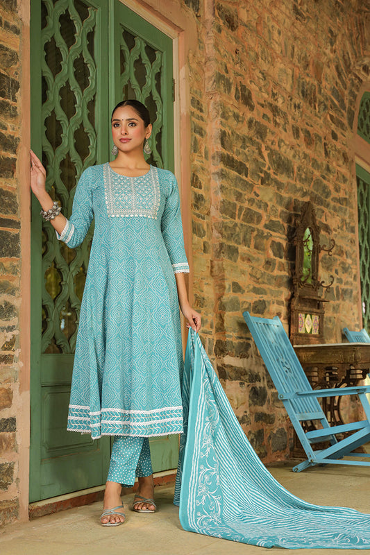 Blue Rayon Blend Kurta Trousers With Dupatta VKSKD1477