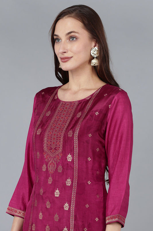 Maroon Rayon Blend Ethnic Motifs Straight Suit Set VKSKD2311