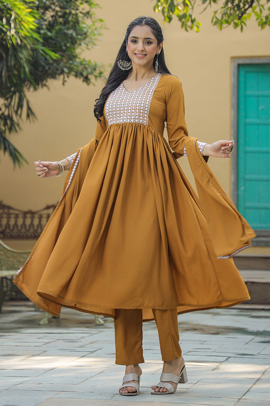 Mustard Rayon Blend Straight Suit Set VKSKD1242