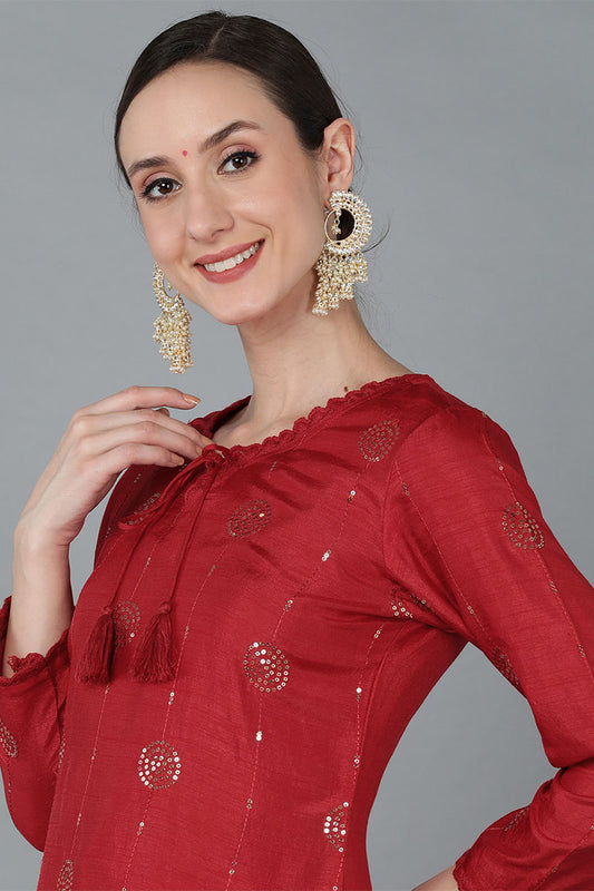 Maroon Silk Blend Straight Kurta Pant With Dupatta PKSKD1847