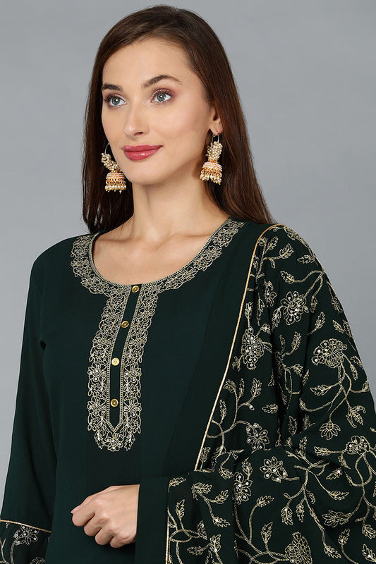 Green Poly Georgette Straight Kurta Palazzo With Dupatta PKSKD1909