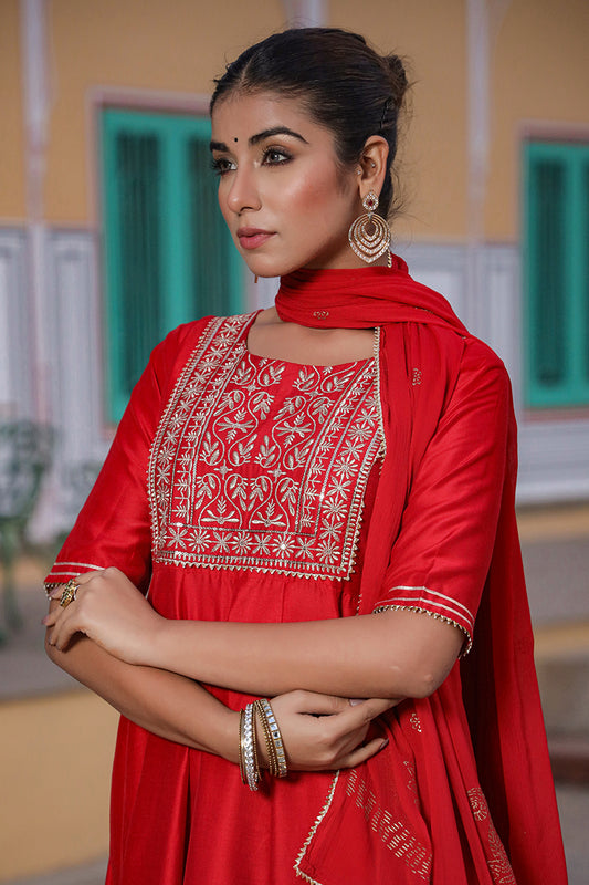 Maroon Silk Blend Anarkali Suit Set VKSKD1481