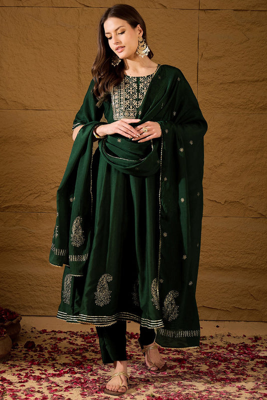 Green Silk Blend Embroidered Anarkali Suit Set VKSKD1218