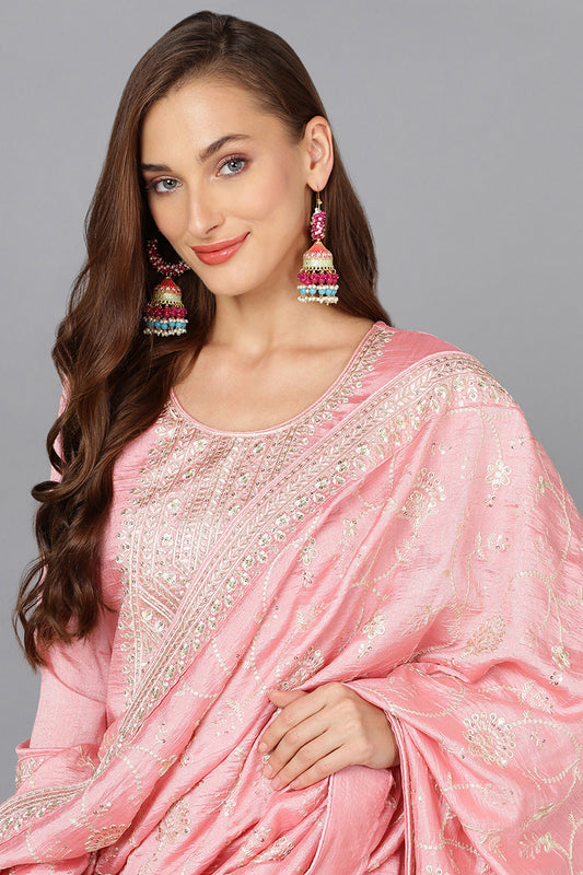Rani Pink Silk Blend Solid Embroidered Straight Trouser Bottom Suit Set PKSKD2472