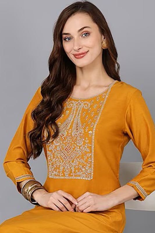 Mustard Silk Blend Solid Straight Kurta VCK9127