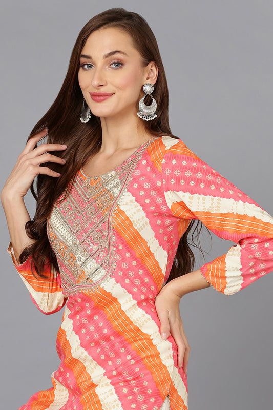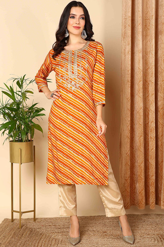 Orange Viscose Rayon Bandhani Embroidered Straight Kurta VCK9060