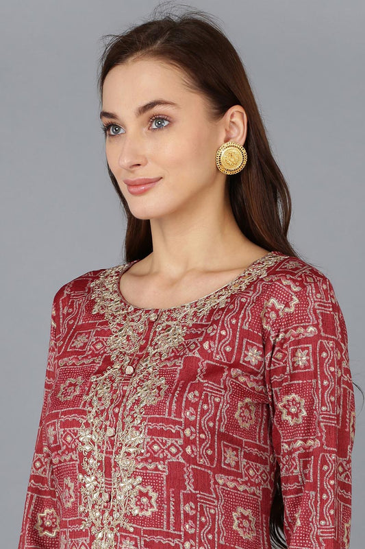 Maroon Silk Blend Geometric Embroidered Straight Kurta VCK9086