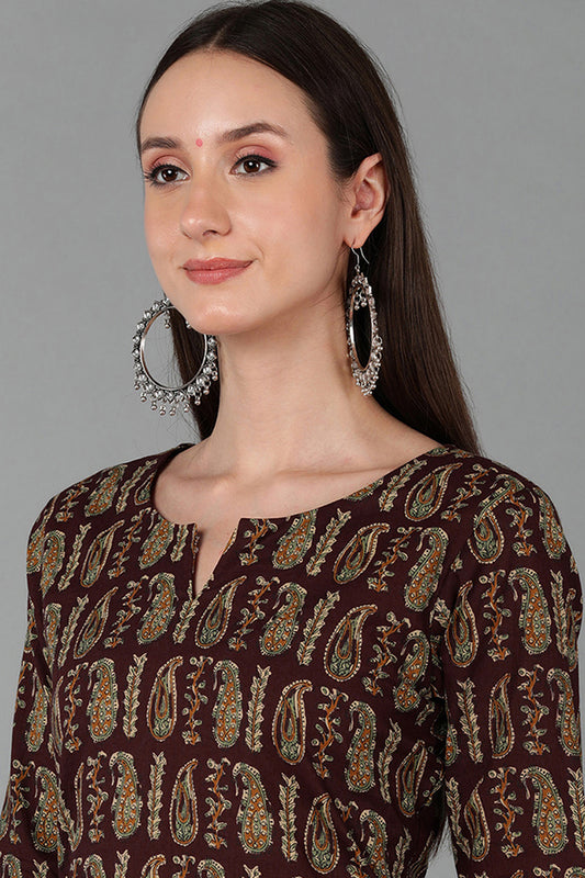 Chikoo Brown Occasion Wear Cotton Fabric Printed Stylish Kurti VCK1174