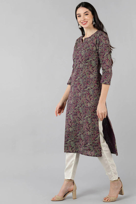 Purple Cotton Straight Kurta VCK8543