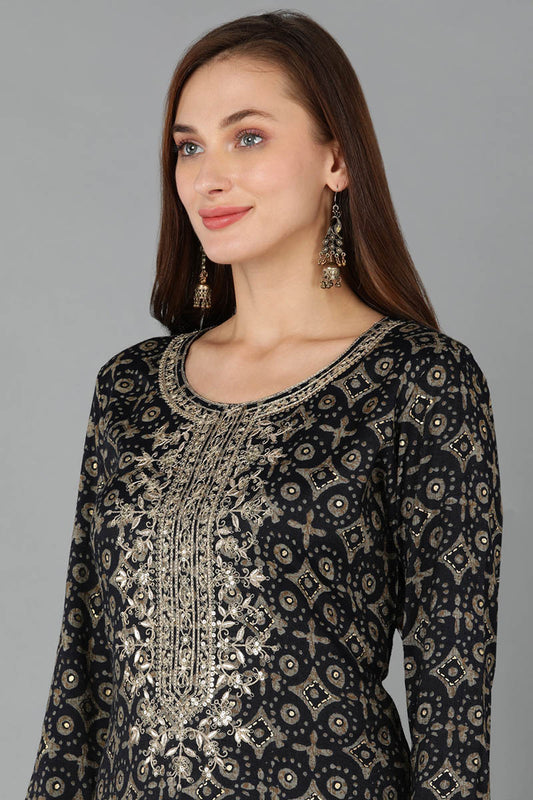 Black Floral Printed Kurta VCK8473