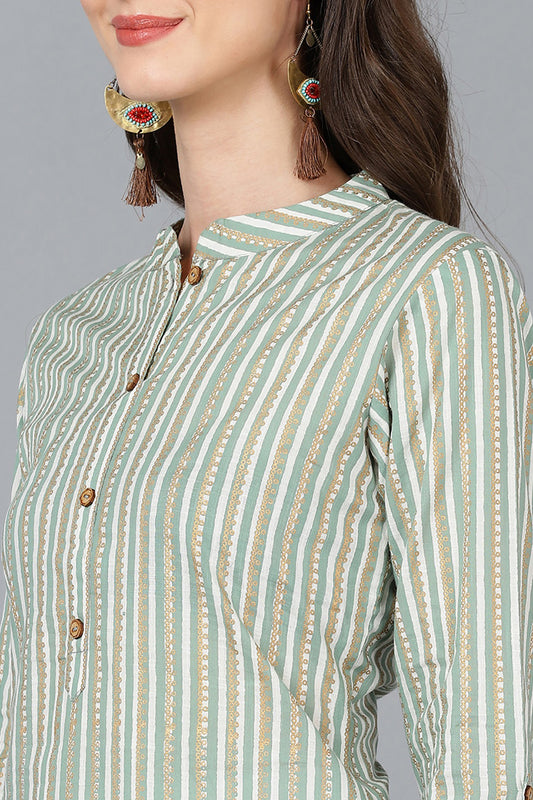 Light Green Cotton Straight Kurta VCK8769