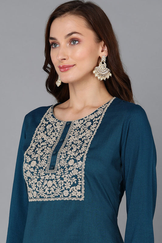 Teal Silk Blend Straight Kurta VCK9125