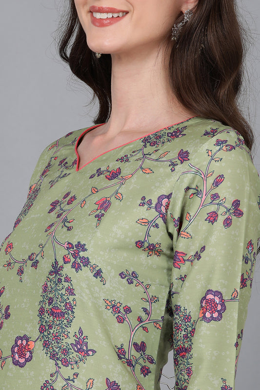 Green Cotton Ethnic Motifs Straight Kurta VCK8748