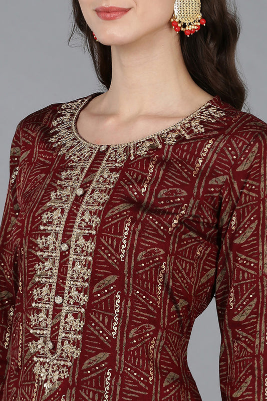 Maroon Silk Blend Ethnic Motifs Embroidered Straight Kurta VCK9031