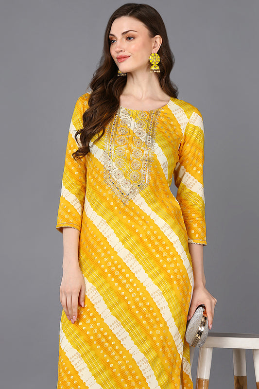 Viscose Rayon Yellow Laheriya Printed Straight Kurta VCK9311
