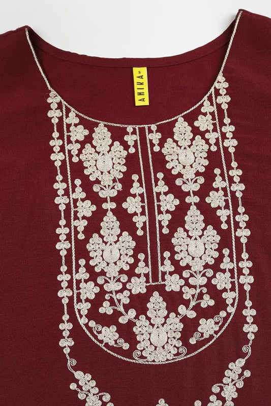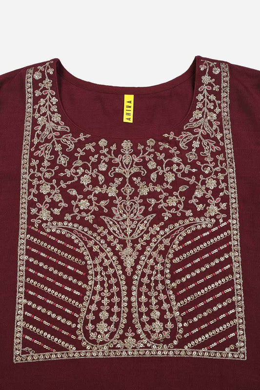 Maroon Silk Blend Solid Embroidered Straight Kurta VCK9081