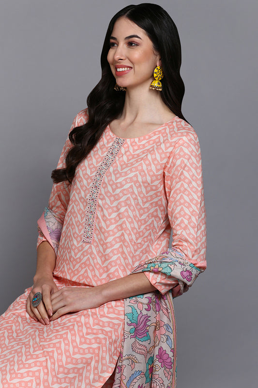Pink Rayon Blend Ethnic Motifs Printed Straight Trouser Bottom Suit Set PKSKD2551PNK
